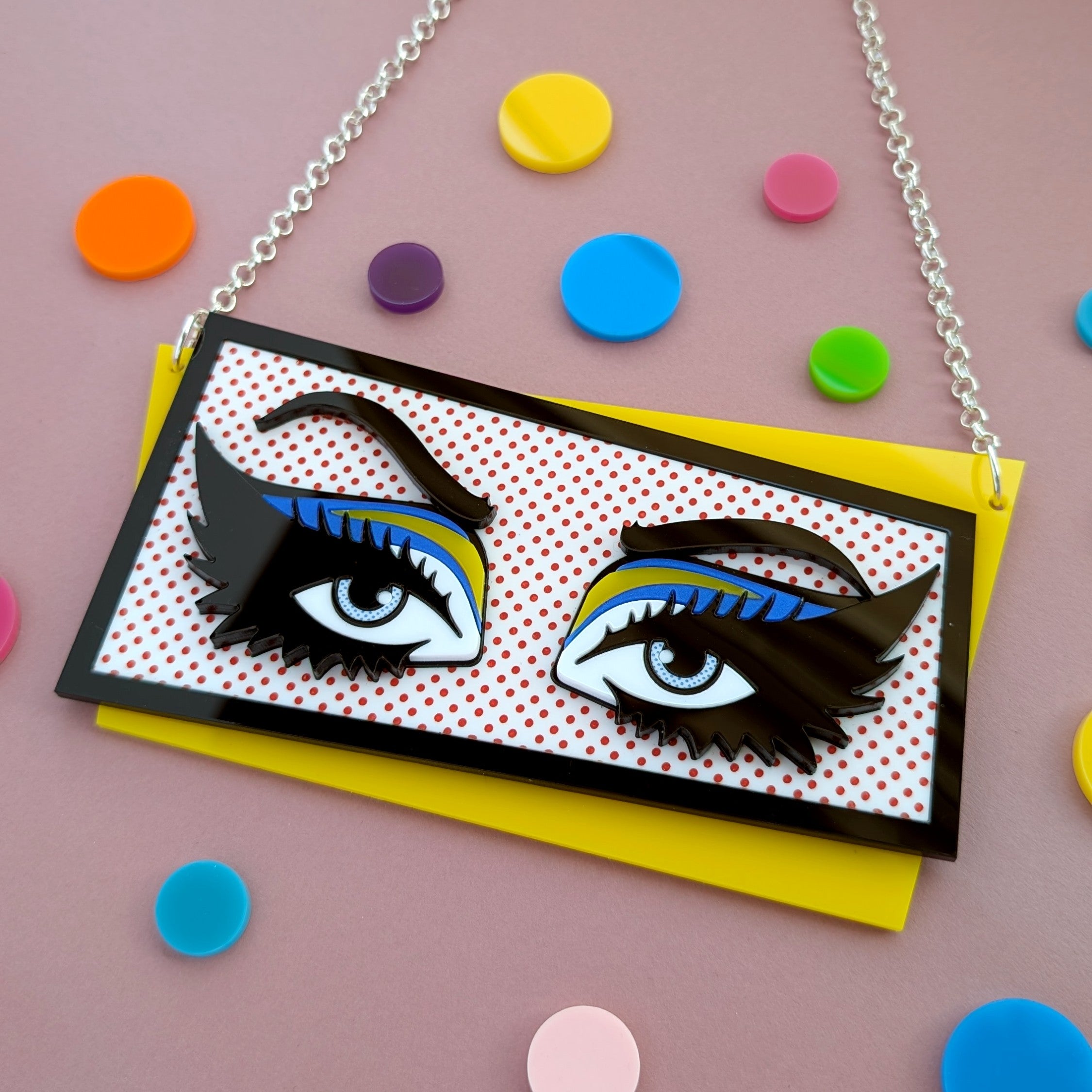 Based on original artwork by The Art Of Drag, this necklace is an homage to Andy Warhol's iconic pop art.